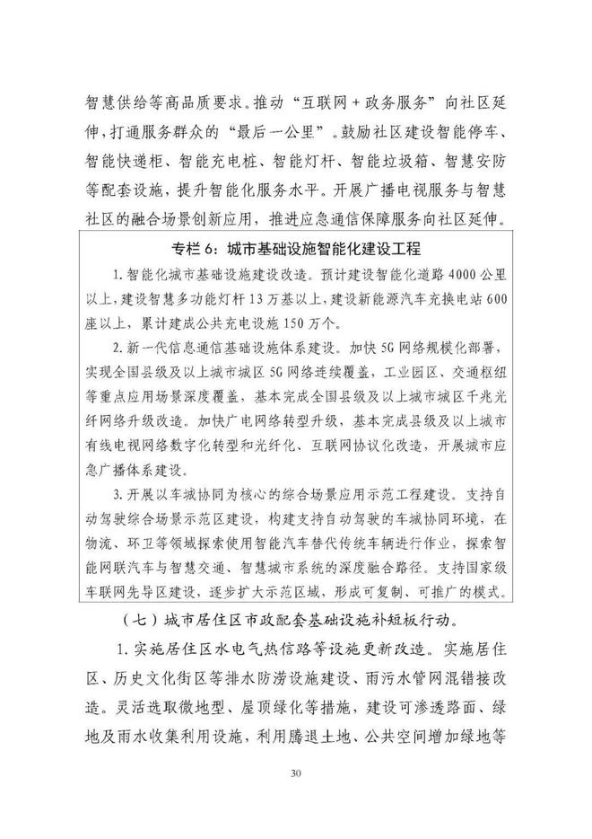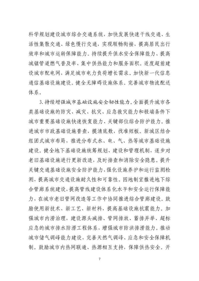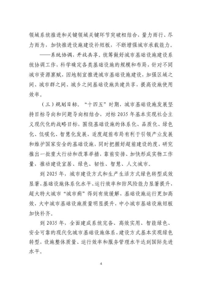 《規劃》圍繞構建系統完備、高效實用、智能綠色、安全可靠的現代化基礎設施體系,提出4方面重點任務。一是推進城市基礎設施體系化建設,增強城市安全韌性能力。二是推動城市基礎設施共建共享,促進形成區域與城鄉協調發展新格局。三是完善城市生態基礎設施體系,推動城市綠色低碳發展。四是加快新型城市基礎設施建設,推進城市智慧化轉型發展。