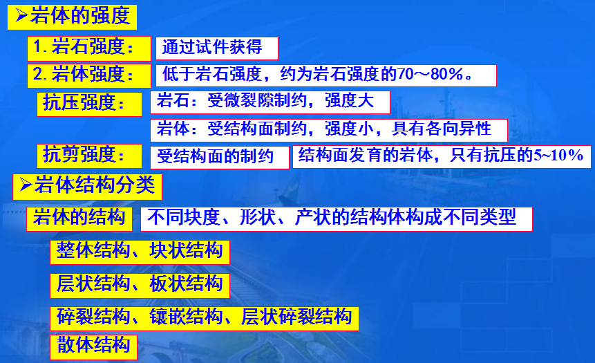 巖石與巖體的區別:巖石具有勻質、連續、各向同性的性質,巖體具有明顯的非勻質、不連續、各項異性。