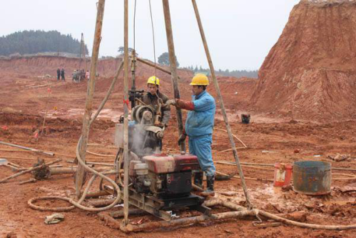 根據自然條件的復雜性以及工程要求選擇鉆探設備和鉆進方法。鉆機一般分為回轉式和沖擊式兩種。回轉式鉆機是利用鉆機的回轉器帶動鉆具旋轉,磨消孔底地層而鉆進,通常使用管狀鉆具,能取柱狀巖芯樣品。沖擊式鉆機則利用卷揚機借鋼絲繩帶動有一定重量的鉆具上下反復沖擊,使鉆頭擊碎孔底地層而形成鉆孔后用抽筒提取巖石碎塊或擾動土樣。針對不同的巖石及地層條件,可選取不同的鉆進方式、鉆機與鉆具。