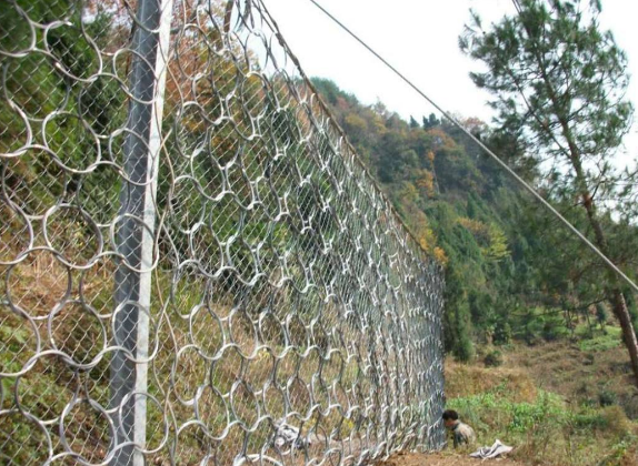 被動防護系統是將以鋼絲繩網為主的柵欄式柔性攔石網設置于斜坡上相應位置,用于攔截斜面坡上的滾落石以避免其破壞保護的對象。它對崩塌落石發生區域集中、頻率較高或坡面施工作業難度較大的高陡邊坡是一種非常有效而經濟的方法。它與主動防護系統相比的主要優點在于清理工作十分簡便或無需清理。