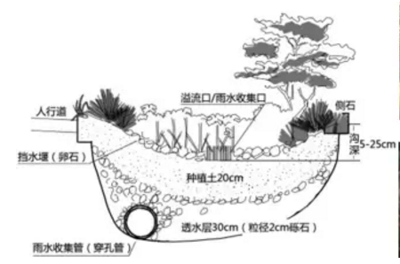第三是“滯”,主要作用是延緩短時(shí)間內(nèi)形成的雨水徑流量。比如說,通過微地形調(diào)節(jié),讓雨水慢慢地匯集到一個(gè)地方,用時(shí)間換空間。我們城市內(nèi)的降雨,是按分鐘計(jì)、按小時(shí)計(jì)的,這跟大江大河不一樣。城市內(nèi)短歷時(shí)強(qiáng)降雨,對下墊面產(chǎn)生沖擊,形成快速徑流,積水?dāng)€起來就導(dǎo)致內(nèi)澇。因此,“滯”非常重要,可以延緩形成徑流的高峰。