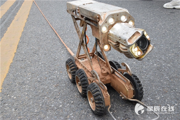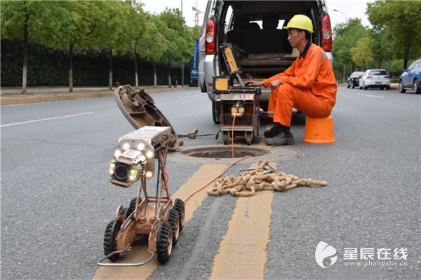 “前頭是個攝像頭,能360度旋轉進行拍攝,緊挨著攝像頭的位置有4個大燈。”劉燕軍介紹,機器人的中間位置有個升降架,這便于探測不同高度的下水井,機器人拖著的一條“尾巴”則是連接器,將探測到的畫面形成影像傳輸到電腦中。據了解,目前長沙縣已有20臺左右這樣的管道機器人在作業,大力提升了工作效率。