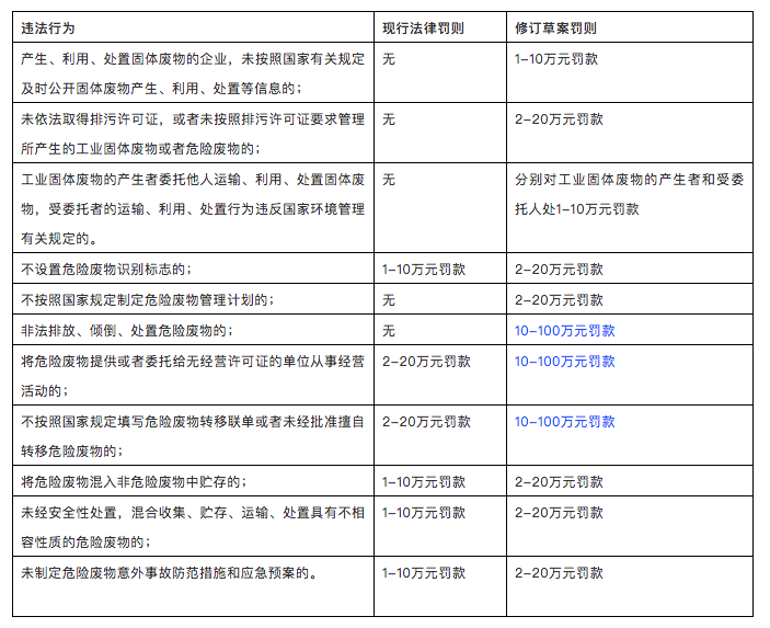 《固廢法》修訂草案涉及罰款的主要變更點: