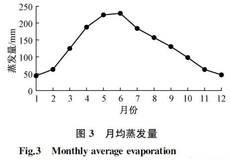 根據石家莊市氣象統計數據,以6月蒸發量為河道蒸發計算的最大口徑,確定蒸發系數為7.38 mm/d。由于石家莊多為硬質渠底,下滲速率忽略不計,月均蒸發量見圖3。