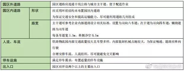 內部道路面積約占鐵路物流園總面積的12%~15%左右。