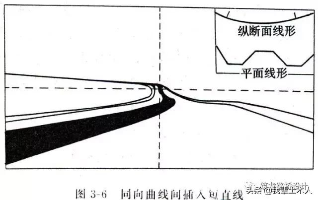 同向曲線:指兩個轉向相同的相鄰曲線之間連以直線而形成的平面曲線