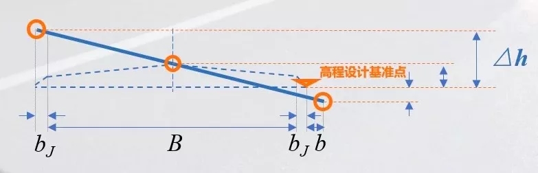 在設計中如何知道超高被明確的設置呢?只要知道橫斷面在超高過渡段上任何一點與高程基準點的高差被明確的確定,這個時候超高設置就能明確的反映出來。