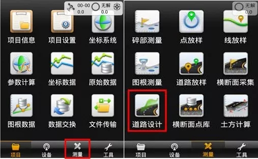 首先打開中海達RTK手簿測量軟件Hi-Survey,【測量】-【道路設計】