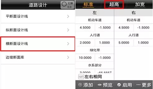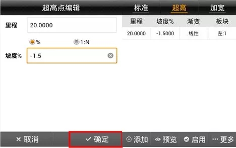 依次輸入四組超高點數據,在預覽界面可以對應查看