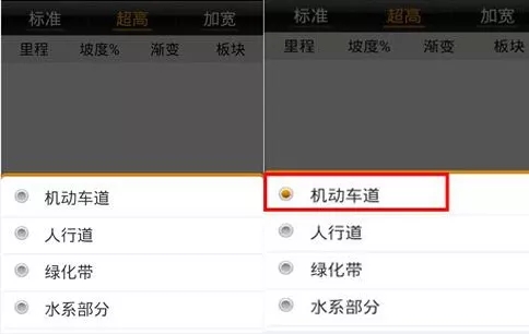 選擇對應超高作用的橫斷面板塊,此處以機動車道設超高為例輸入。