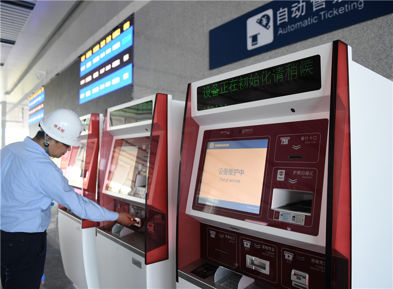 9月18日,工作人員對京雄城際北京大興站內的自動售票機進行檢查。