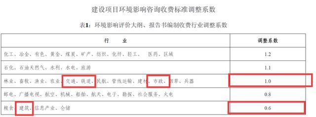 建設項目環境影響咨詢收費標準調整系數