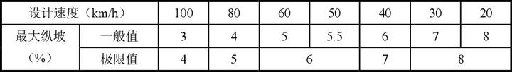快速路的車速在60-100km/h,主干道的車速在40-60km/h;也就是說快速路的最大坡度在3-5%之間,主干道的最大坡度在5-6%之間。但是在實際的操作中,一般將主干道及快速路的坡度控制在3%以下,以上的數據可當做極限值。