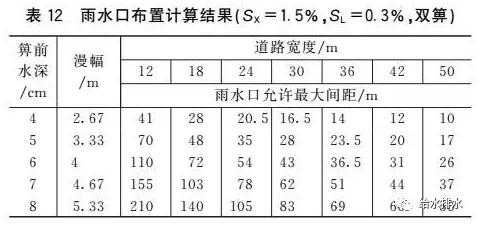 (3)當道路縱坡和漫幅不變時,雨水口允許最大間距隨道路橫坡增大而增大。