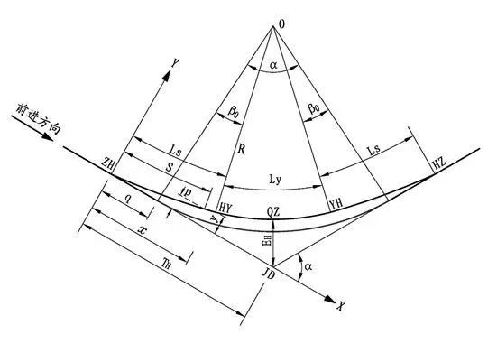 易于適應(yīng)地形,能很好地與汽車行駛軌跡相適應(yīng),使線形連續(xù)、美觀,但緩和曲線計(jì)算、布設(shè)較繁瑣