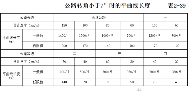 當(dāng)?shù)缆忿D(zhuǎn)角小于7°時(shí),為防止駕駛員在視覺(jué)上產(chǎn)生急彎錯(cuò)覺(jué),而導(dǎo)致操縱失誤,應(yīng)設(shè)較長(zhǎng)的平曲線