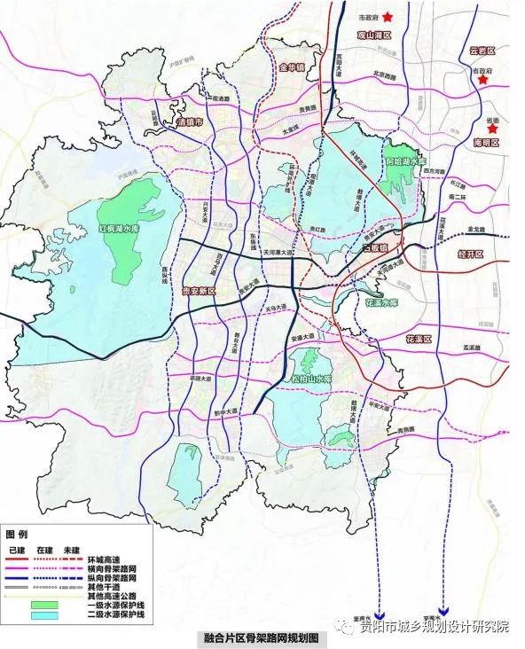 融合城市空間規(guī)劃發(fā)展需求,加強(qiáng)交通對(duì)產(chǎn)業(yè)服務(wù),順應(yīng)山地城市特點(diǎn),在融合片區(qū)打造“十橫十縱”骨架路網(wǎng),支撐貴陽貴安融合發(fā)展。