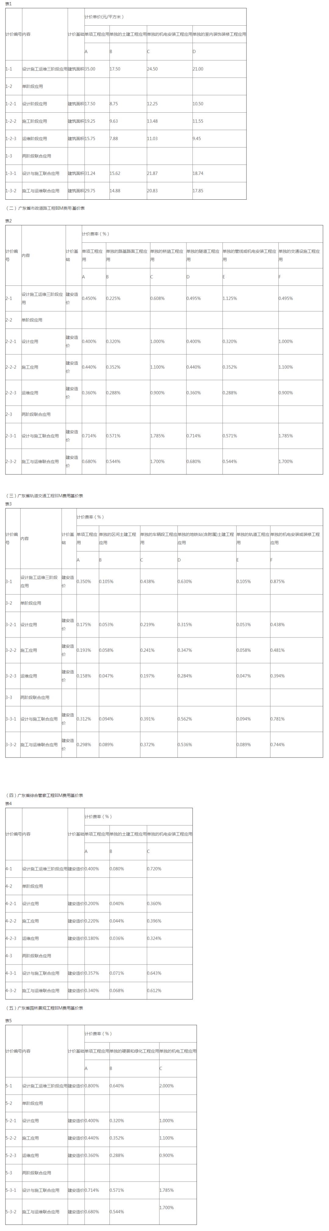 (2)工業(yè)與民用建筑工程,當(dāng)建筑面積少于2萬平方米時(shí),按2萬平方米作為計(jì)價(jià)基礎(chǔ)計(jì)算建筑信息模型(BIM)技術(shù)應(yīng)用費(fèi)用;市政道路工程、軌道交通工程、地下綜合管廊工程的造價(jià)少于1億元時(shí),按1億元作為計(jì)價(jià)基礎(chǔ)計(jì)算建筑信息模型(BIM)技術(shù)應(yīng)用費(fèi)用;園林景觀工程的造價(jià)少于1000萬元時(shí),按1000萬元作為計(jì)價(jià)基礎(chǔ)計(jì)算建筑信息模型(BIM)技術(shù)應(yīng)用費(fèi)用。