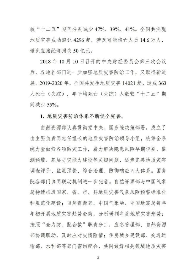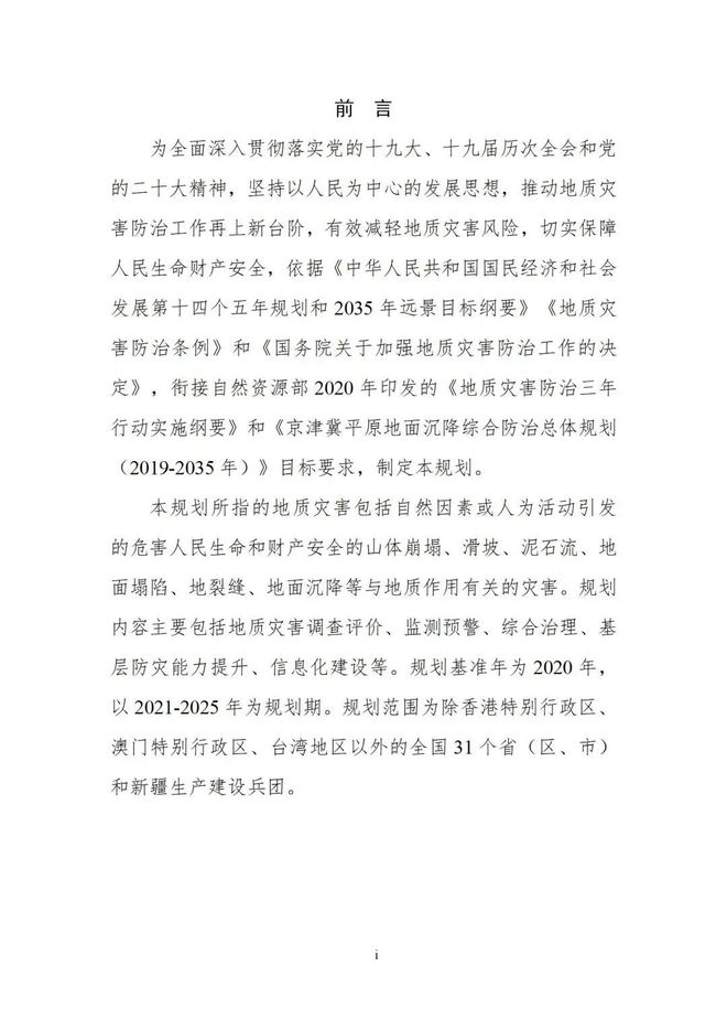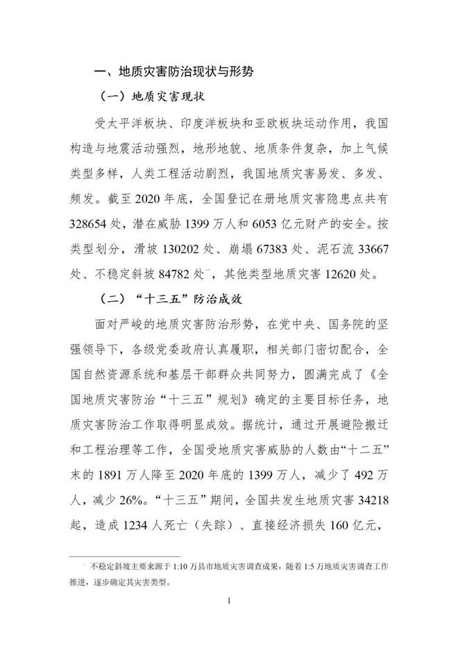 自然資源部關于印發《全國地質災害防治“十四五”規劃》的通知