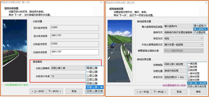 緯地軟件加寬設(shè)計(jì)功能4、集成了完整的公路設(shè)計(jì)規(guī)范指標(biāo)緯地軟件支持用戶自定義各等級技術(shù)指標(biāo),用戶可根據(jù)需要,對技術(shù)標(biāo)準(zhǔn)庫進(jìn)行編輯與擴(kuò)充。針對《小交通量農(nóng)村公路工程技術(shù)標(biāo)準(zhǔn)》,緯地軟件已于該標(biāo)準(zhǔn)發(fā)布第一時間,進(jìn)行了研習(xí),并集成了相關(guān)技術(shù)指標(biāo),用戶可根據(jù)項(xiàng)目等級,直接選擇小交通量道路等級,并由軟件,自動完成路幅寬度、斷面形式提取,超高加寬等自動計(jì)算。