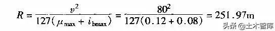 例1-2-1 某平原區(qū)二級公路,計(jì)算行車速度v=80km/h,試問該公路的極限最小半徑為多少?