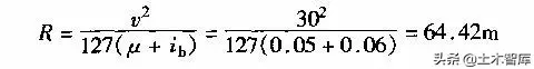 例1-2-2某山嶺重丘區(qū)三級公路,其設(shè)計(jì)車速v=30km/h,試問該公路的最小半徑為多少?