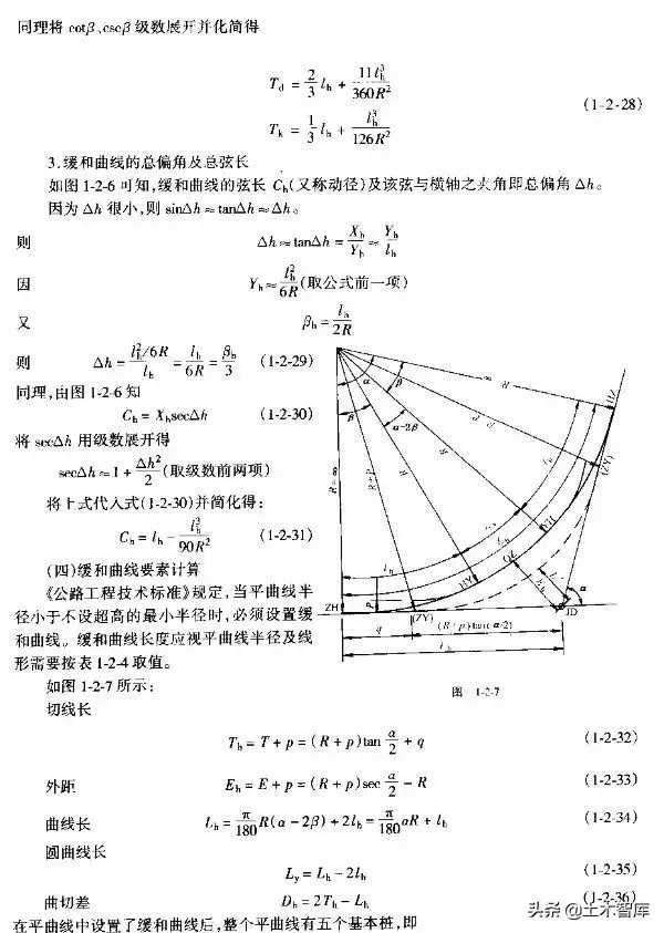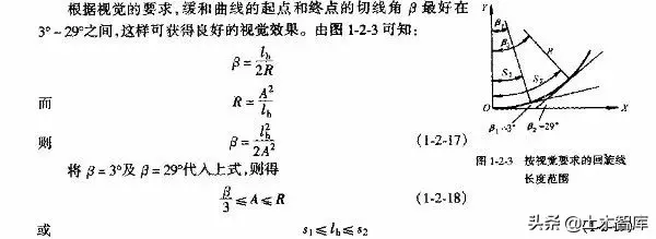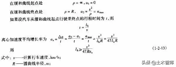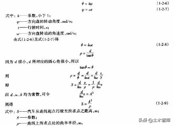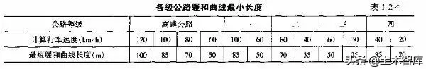 上式表明.最短的緩和曲線與半徑的大小無關(guān),即使平曲線半徑較大,當(dāng)汽車高速行駛時(shí),也應(yīng)有個(gè)轉(zhuǎn)變過程,因而式(1-2-15)是高等級公路設(shè)置緩和曲線的校核式。