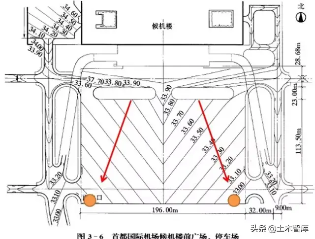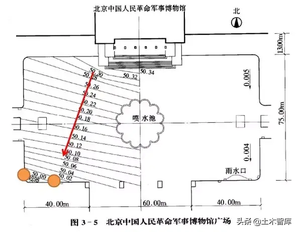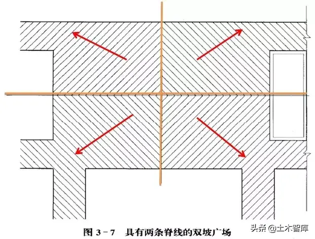 ?用箭頭表明地面的排水方向