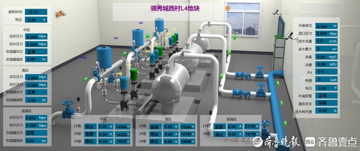 而在濟南水務(wù)集團二級供水監(jiān)控中心內(nèi),大屏上正實時顯示每個二次泵站小區(qū)設(shè)備運行情況,值班人員時刻通過平臺查看設(shè)備電壓、用電量、進出廠壓力、水箱液位是否處于良好狀態(tài)。而這僅是智慧水務(wù)信息收集與檢測的一個縮影。