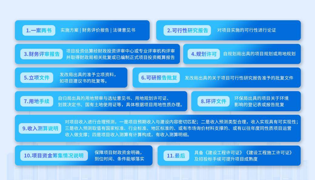 一是由專業機構撰寫的項目實施方案(具體包括項目概況、投資測算、收益測算、平衡分析和測算附表),切忌方案強行平衡
